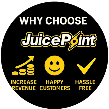 JuicePoint partners with venues, events, and businesses across the UK to provide fast, reliable phone charging through sleek, easy-to-use power bank rental stations.